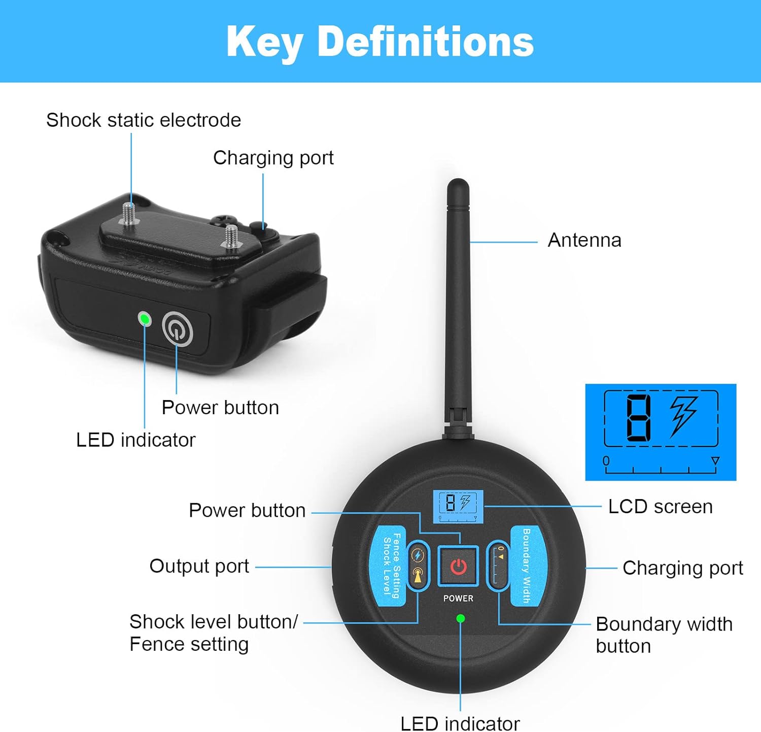 Quick & Easy Set-Up - Simply place the collar receiver around your dog’s neck, turn on the dog wireless fence system, and select your preferred settings on the control panel.